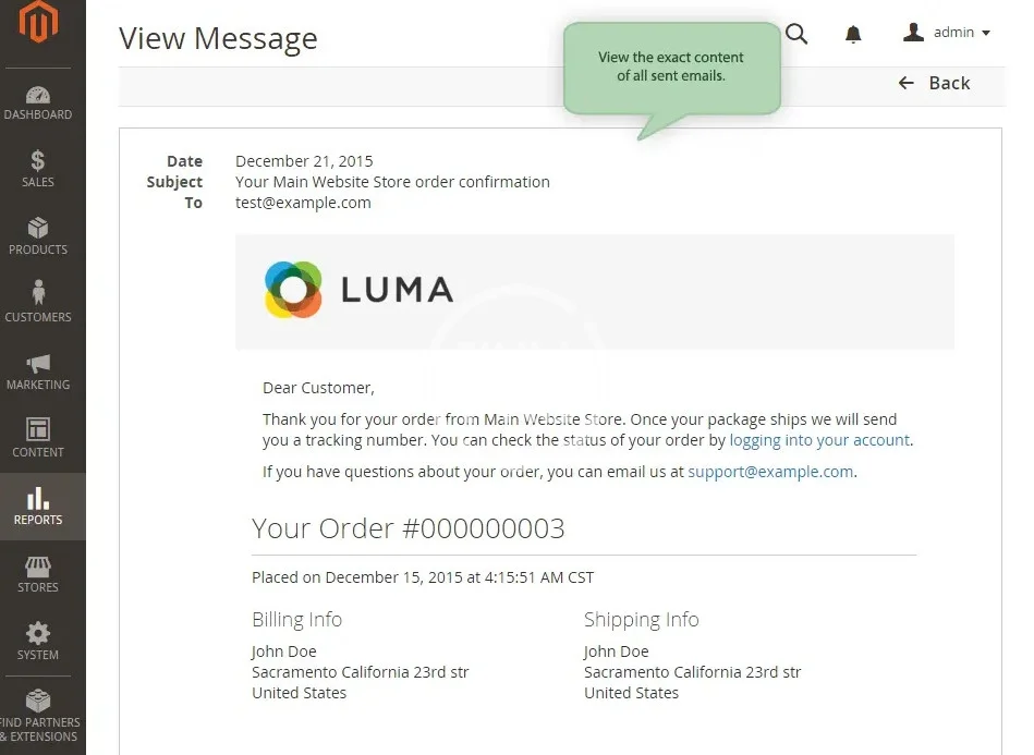 - View the content of sent emails