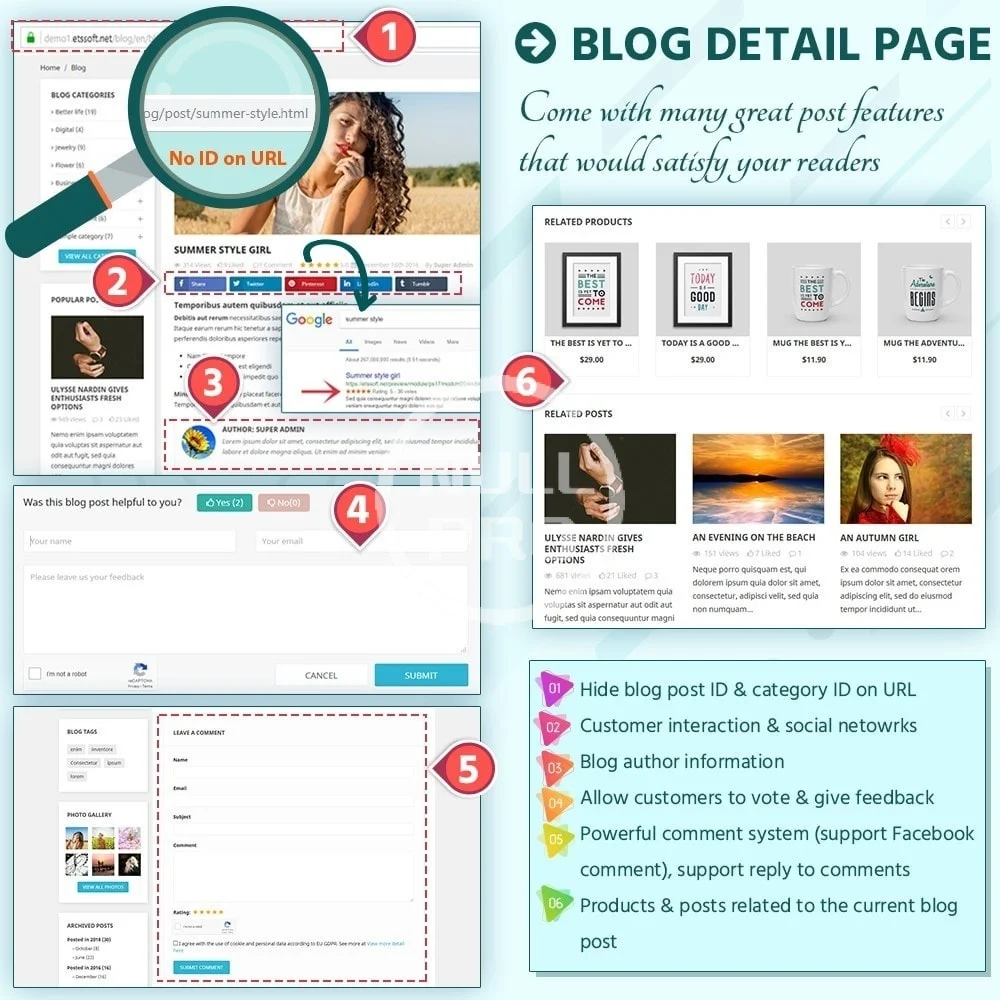 El blog viene con todo lo que necesitas para construir un blog profesional para tu sitio web de comercio electrónico PrestaShop. Todas las características disponibles en el blog son de la más alta calidad con instrucciones y opciones de personalización sencillas y fáciles de entender, proporcionando las mejores soluciones de blog para tu sitio web de PrestaShop.