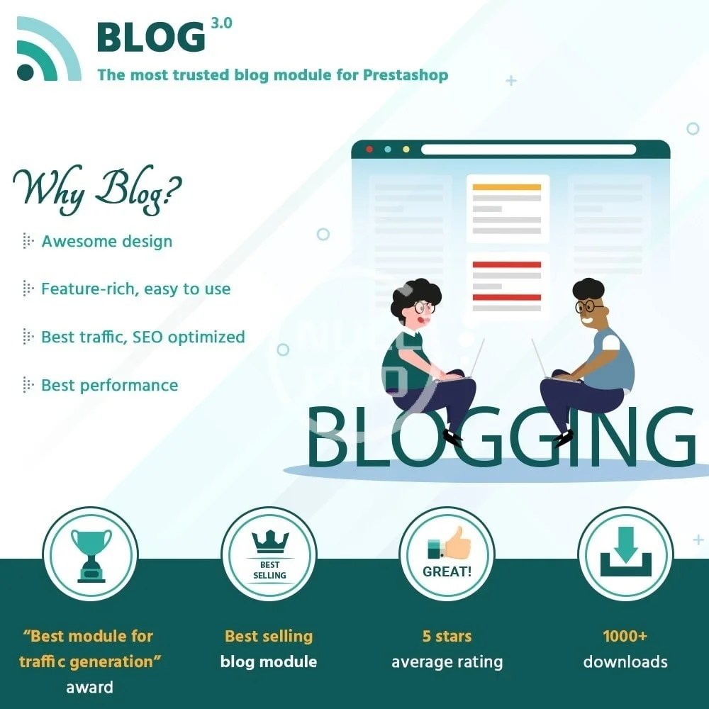 - El módulo de blog más confiable de PrestaShop, premio a mejor rendimiento de tráfico, mejor rendimiento, fácil de usar