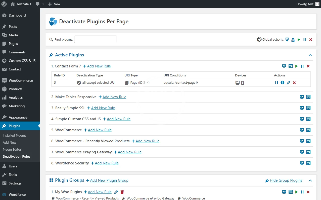WP Plugin Manager Pro - Deactivate plugins per page N