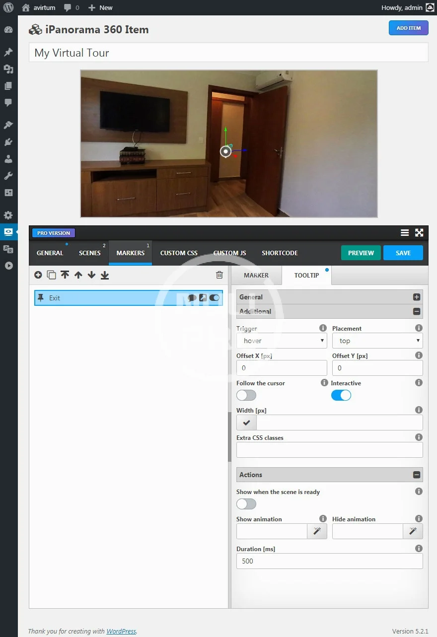 iPanorama 360 Virtual Tour Builder is the WordPress plugin that lets you create awesome virtual tours for your customers without advanced programming knowledge. Using the built-in builder you can easily upload your panoramic photos, add hotspots that allow the user to navigate from one scene to another, add popover windows to point out important information about any part of the scene. You can enrich a hotspot or popover window with text, images, video and other online media. This panorama plugin is responsive and works on all modern browsers and mobile devices. Use this plugin to create interactive tours, maps and presentations.