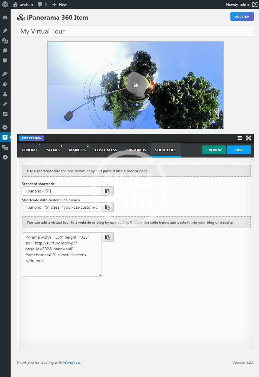 - Embed – publish pano on different sites with the iframe