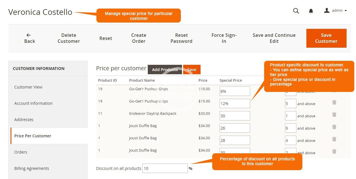 Reward your most loyal customers with special individualized prices. Now adjust tier price for product and customer group with Price Per Customer Magento 2 Extension.