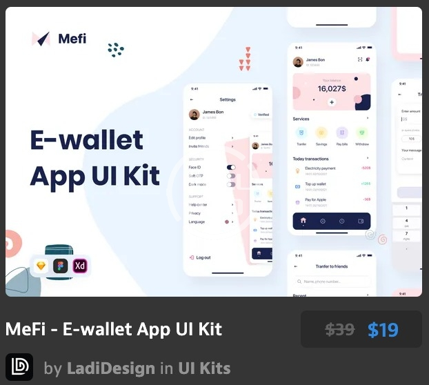 MeFi is a high quality UI Kit for Wallet & Finance apps with a pack of 50+ amazing app screens.