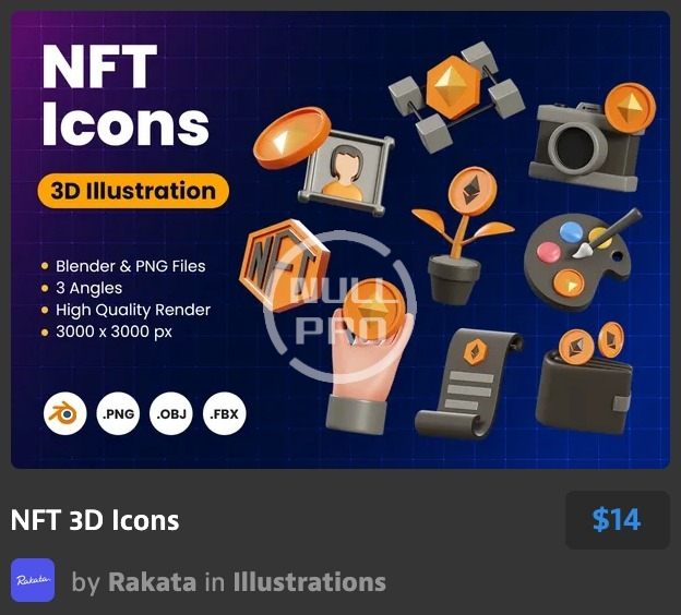 NFT 3D Icons can be used for design needs, animation, web design, UI design, presentation slides, posters, and others.