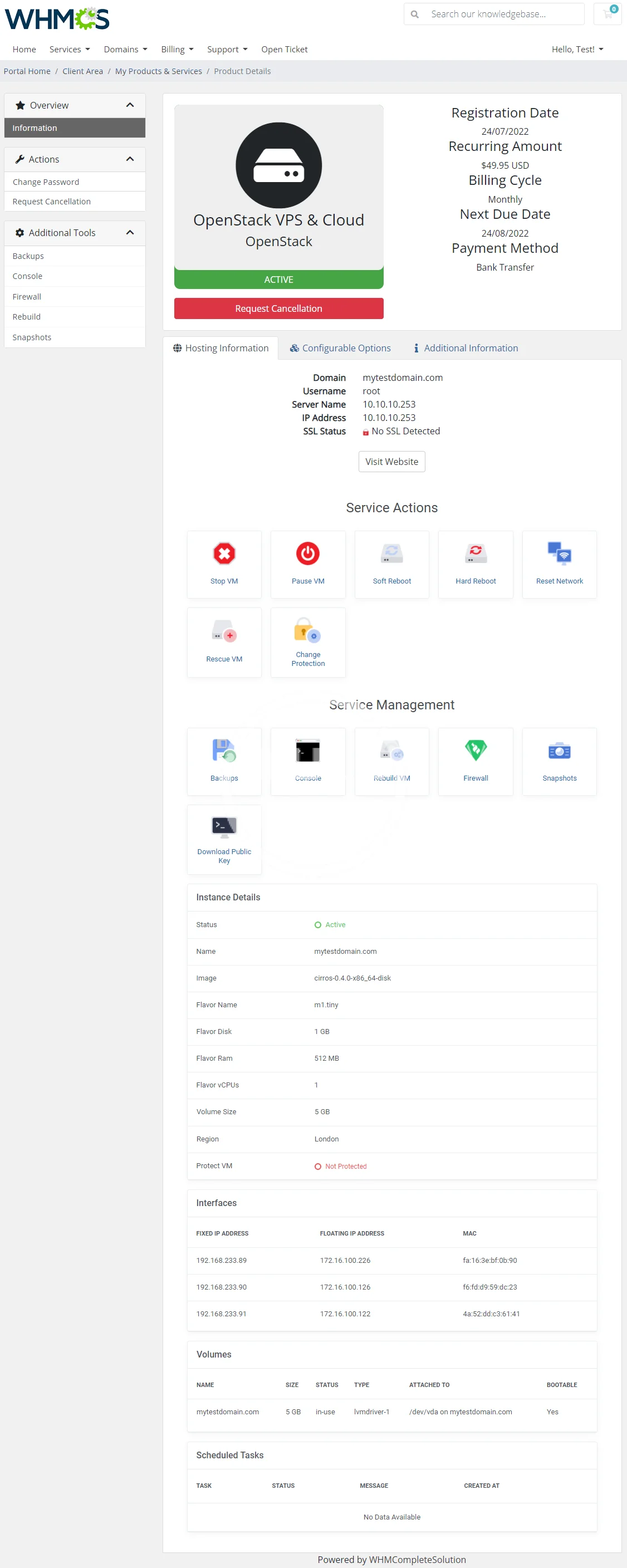 OpenStack VPS & Cloud For WHMCS is a remarkably powerful tool in the hands of everyone who wants to blaze new paths in the industry and deliver OpenStack virtual servers with never before seen ease and efficiency. Order the module today to reinvent the customer experience and stay way ahead of the pack!