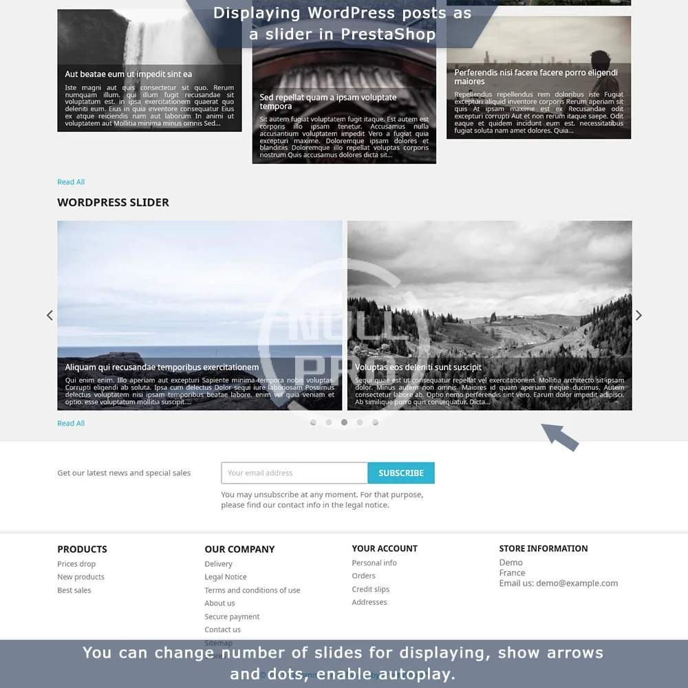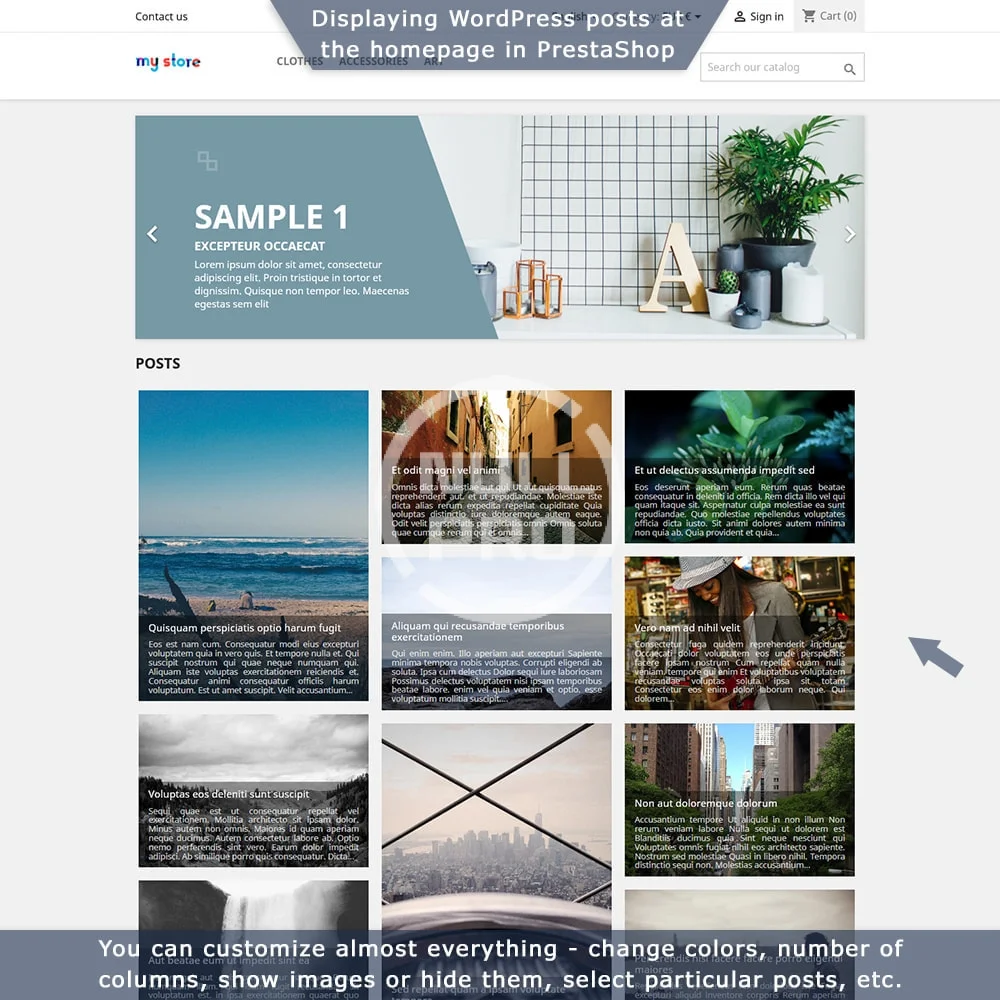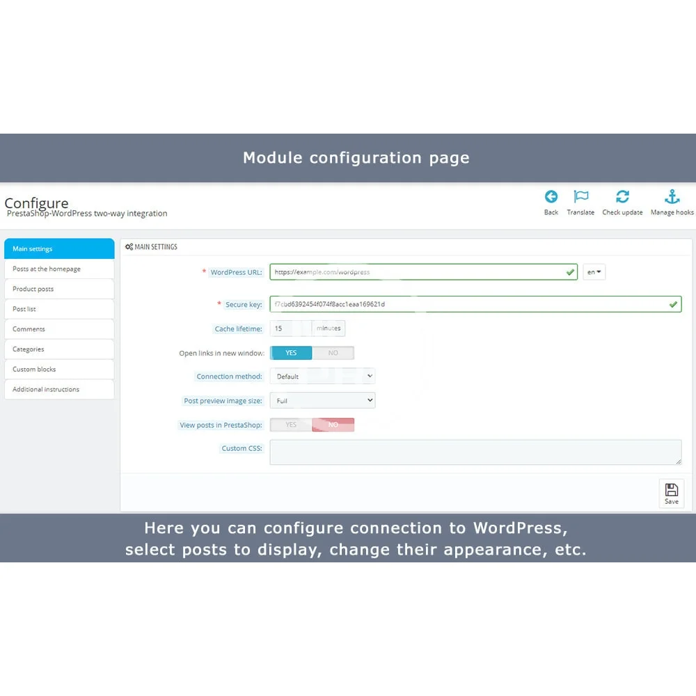 - Display WordPress posts in your store and PrestaShop products in your blog.