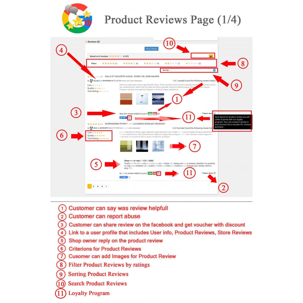 - Module include Product Reviews, Store Reviews, Loyalty Program, User profile and Google Rich Snippet
