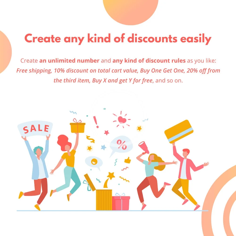 - Create and manage an unlimited number of discount rules.