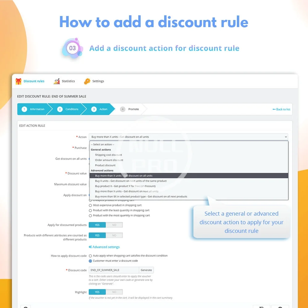 - Add or edit action for each discount rule.
