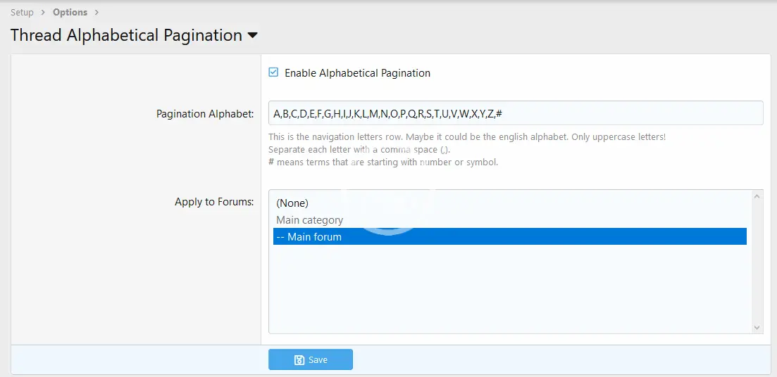 - Apply the alphabet pagination bar to specific forums.