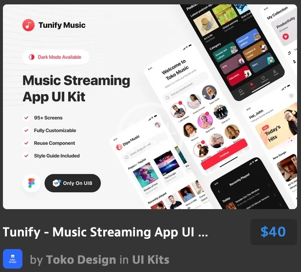 Tunify - Music Streaming App UI Kit.webp