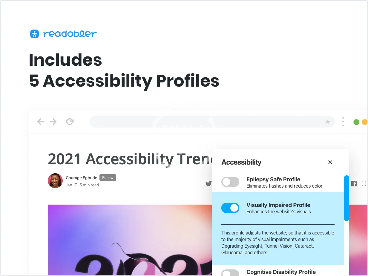 Readabler is a WordPress accessibility plugin that expands the boundaries of information accessibility for people with special portability. The availability of content for people with special needs or difficulties with information perception is the most important part of each site’s operation.