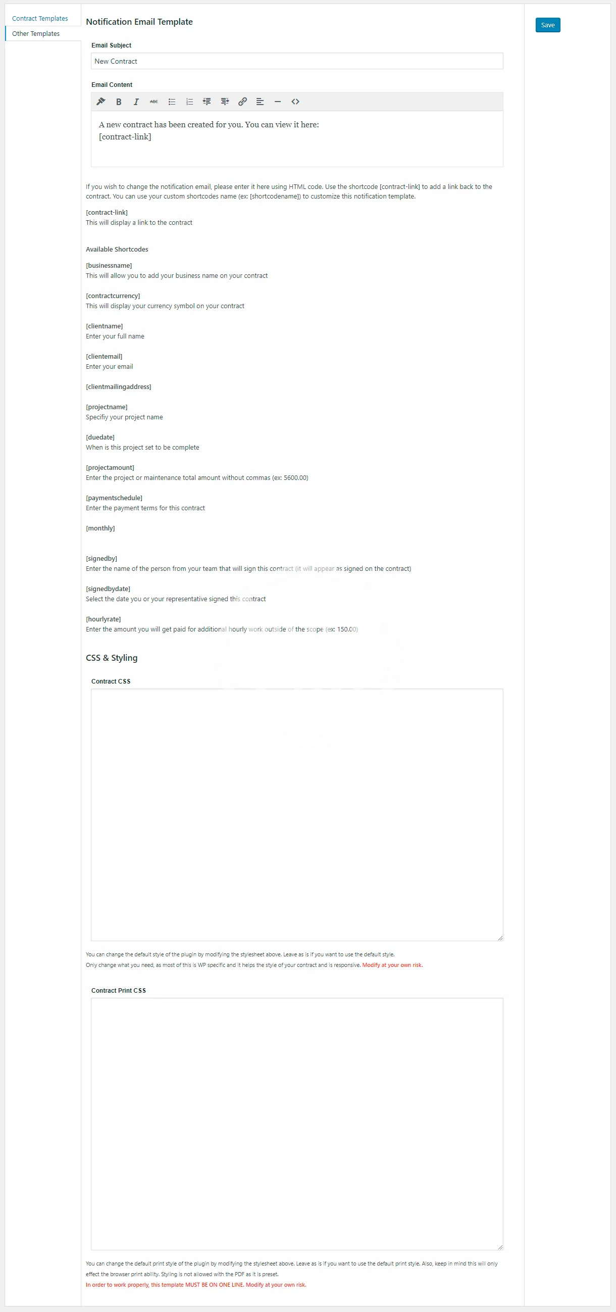 - CREATE YOUR OWN TEMPLATES Use WordPress’s built in editor create your own contract template.